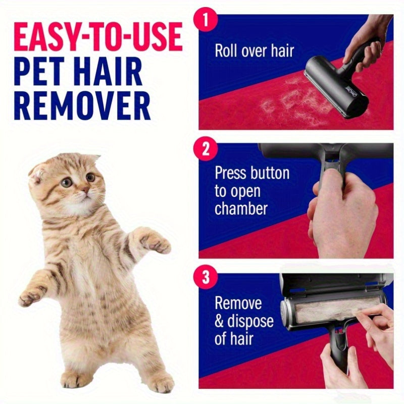 Pet Hair Remover and Reusable Lint Roller- Black Cat and Dog Hair Remover for Furniture, Sofa, Carpet, Clothes and Bedding- Portable Multi-Surface Hair Removal Tool